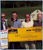 Barrie, Ontario -- Cliff Topping of Clarke Transport had 10,000 reasons to smile, after he made a hole-in-one at the Central Ontario Transportation Association Golf Tournament. Cliff used an 8-iron to one-hop-it into the second hole at Bear Creek Golf Club.